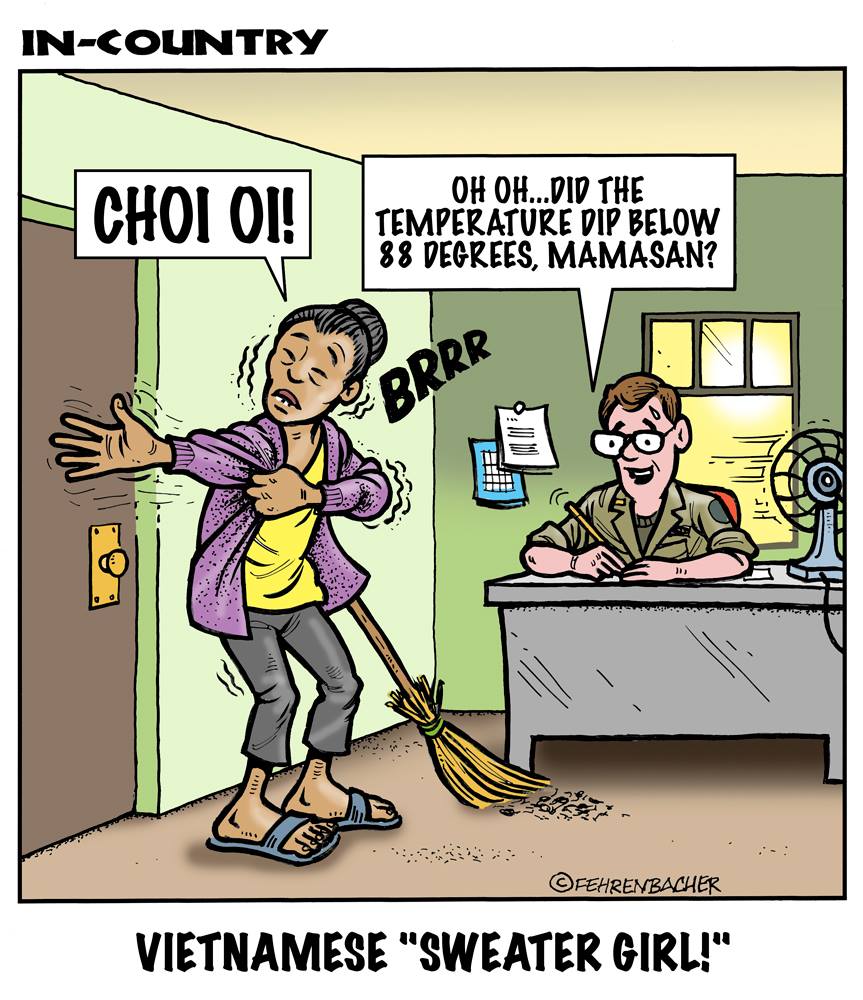Phil enlisted in the Army in 1965 where you served for years in Vietnam. He became a graphic designer and has worked for the state of Oregon for 26 years. He retired in 2003 and started the Cartoon "In-Country". The cartoons reflect his experiences during his tour of duty in South Vietnam.
